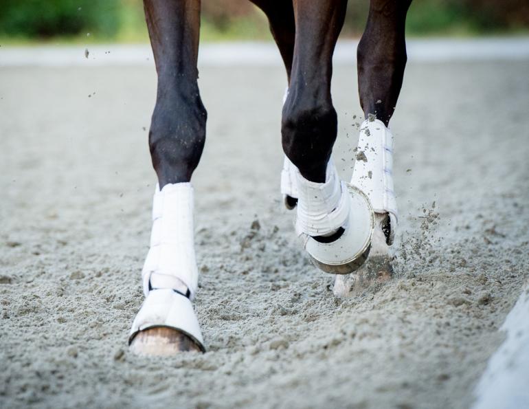 The same rider piloted each horse at a trot on two surfaces: an indoor arena with firm sand mix, and a soft sand outdoor ring. Loading measurements were recorded from impact, slide, and mid-stance for a minimum of 10 stances.