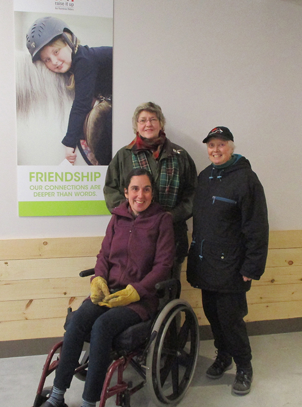 Now the barriers are down. The spacious complex is truly a dream come true. Fully wheelchair-accessible, it includes a horse barn with grooming stalls, wash stalls, tack room/laundry, multipurpose room, offices and kitchen, roomy washrooms, a huge arena, and nine nearby turnout paddocks. One young rider, strapped into a custom-designed electric wheelchair, was asked what he thinks. For the very first time he was able to maneuver himself from one area of the building to another using only his joystick. Hallelujah!