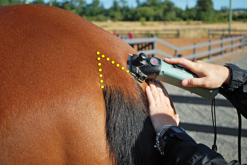 Always move the clippers against the direction of the hair growth. Long, generous strokes with the clippers will result in fewer lines showing up. Otherwise, the horse may end up looking like a patchwork quilt.