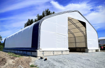 To ensure a long-lasting structure, all our ES, XES and PCX model shelters are double truss. We have three categories: INDUSTRIAL, COMMERCIAL and HEAVY DUTY COMMERCIAL. The difference between the categories relates to the size and quantity of the galvanized steel used and the bay spacing distance. The closer the bay spacing, and the greater the size and amount of the galvanized steel, the stronger the shelter, and the better it can withstand snow loads. The higher the weight of the PVC fabric the longer the life span of the cover.