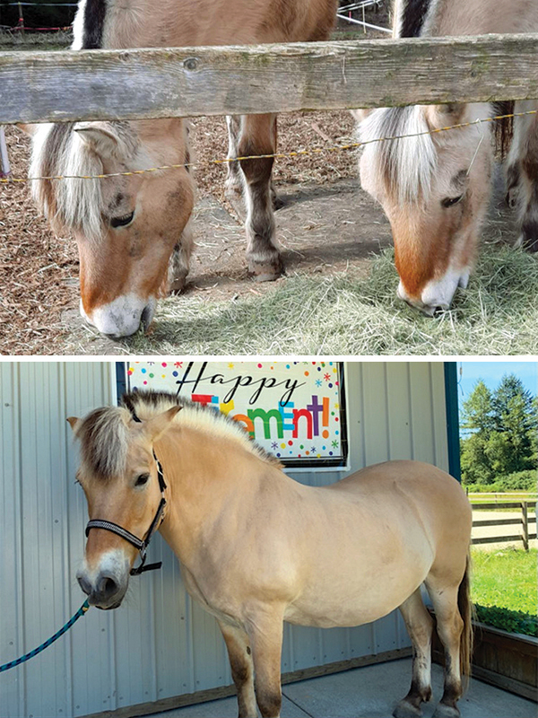 Still in excellent health, Rupert and Buck remain active in their retirement as NFTRA ambassadors. They enjoy trail rides, visiting schools and retirement homes, and never miss the chance for a treat!