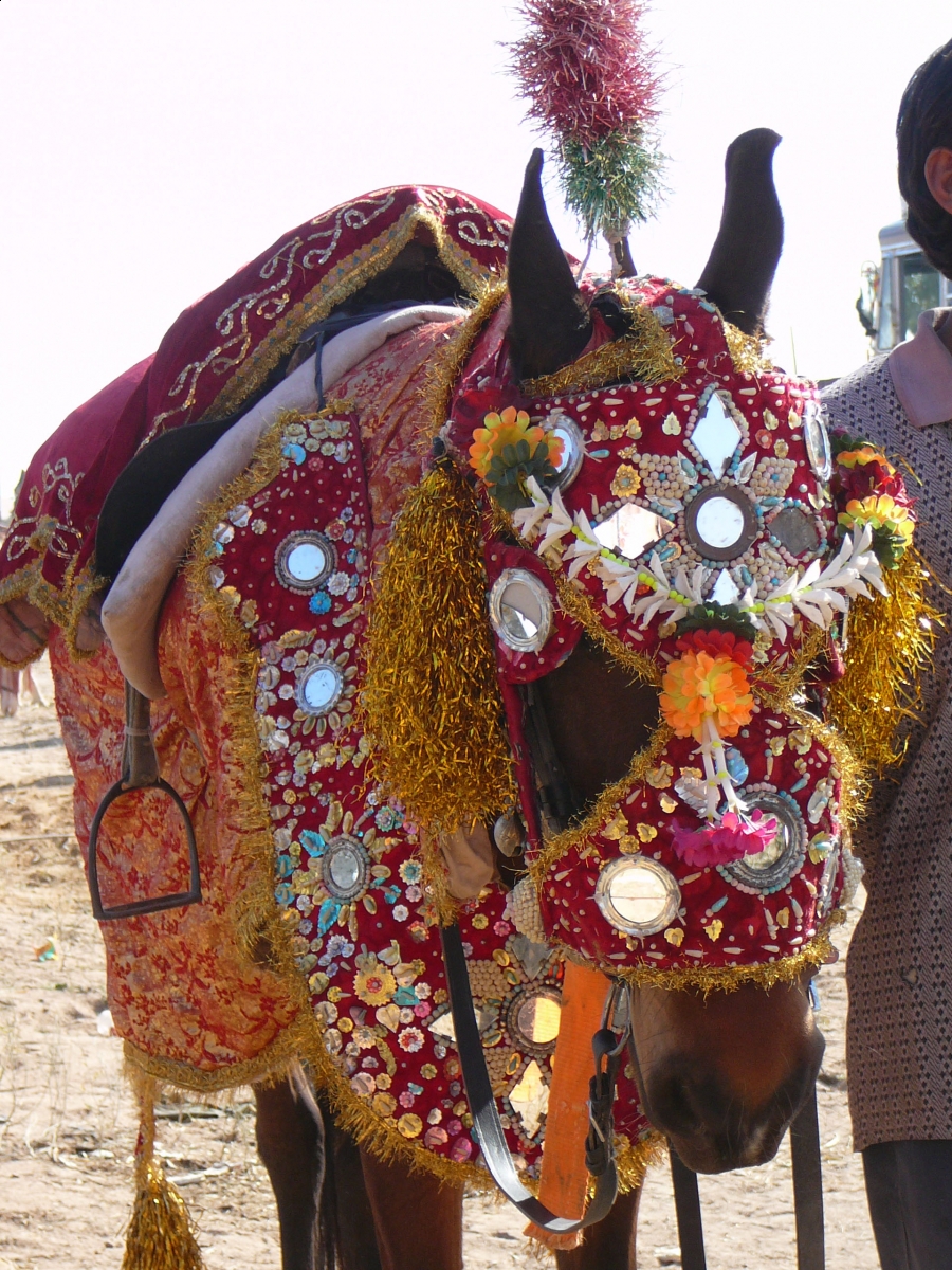 “It can take up to an hour for the groom to ride perhaps one mile (1.65 kilometres) as the bharat (groom) party dance and sing him slowly to his destination. These marriage horses are worth their weight in gold to the owner, as in India it is always marriage season! Other Marwari are kept for the love of it, I guess like a pet, as something to look after and be proud of. (They are) usually mares for breeding with the offspring being sold at the fairs as a source of extra income. Some are used to pull a tonga (buggy cart).”