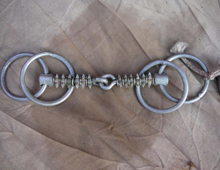 A handmade bit in a horse’s mouth. Unlike western bits, these handmade bits have jagged edges and sharp spikes. Photo: Caroline Moorey