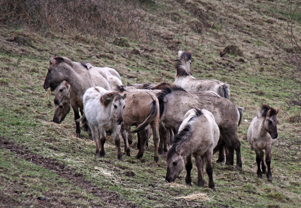 The concept of using large grazing animals in conservation projects is relatively new but in the last decade has proven to be enormously successful in Europe and the UK. The Konik horses are actually a breed bred-back to be similar to the ancient tarpan that inhabited the forests and wetlands of Europe and Western Asia for millennia. The tarpan became extinct around the turn of the 20th century, the last few being captured in Poland and put in zoos. European scientists, though, noted that domestic mares that ran in herds where the tarpan had formerly ranged continued to produce foals with tarpan characteristics, including mousy-grey colouring, dark manes frosted with white hair, striped forelegs, and a tendency to turn partly white in winter.