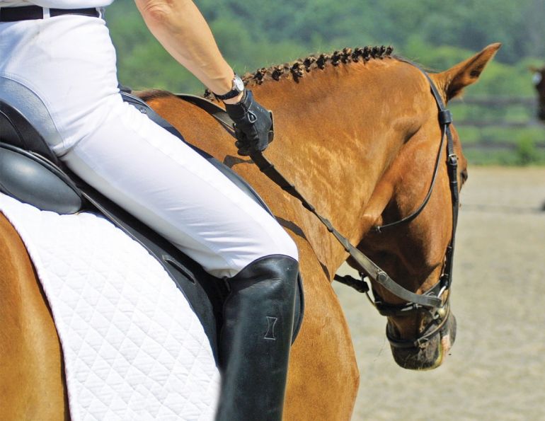 If the saddle puts pressure on the reflex points along the spine because of a gullet channel that is too narrow, or the saddle twists during movement because of natural asymmetry, the horse will reflexively lower its back to escape the pressure or pain. The goal to have the horse engage its back becomes unachievable. The forward impulse and momentum is lost, the rider is out of balance, and the horse becomes defensive and won’t go on the bit. The result is a frustrating experience for both horse and rider. The horse would like to respond to the rider’s aids, but the pressure on his reflex points inhibits his ability to do so.